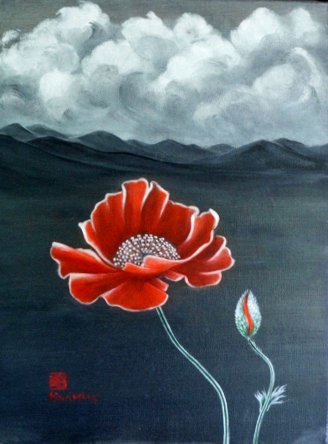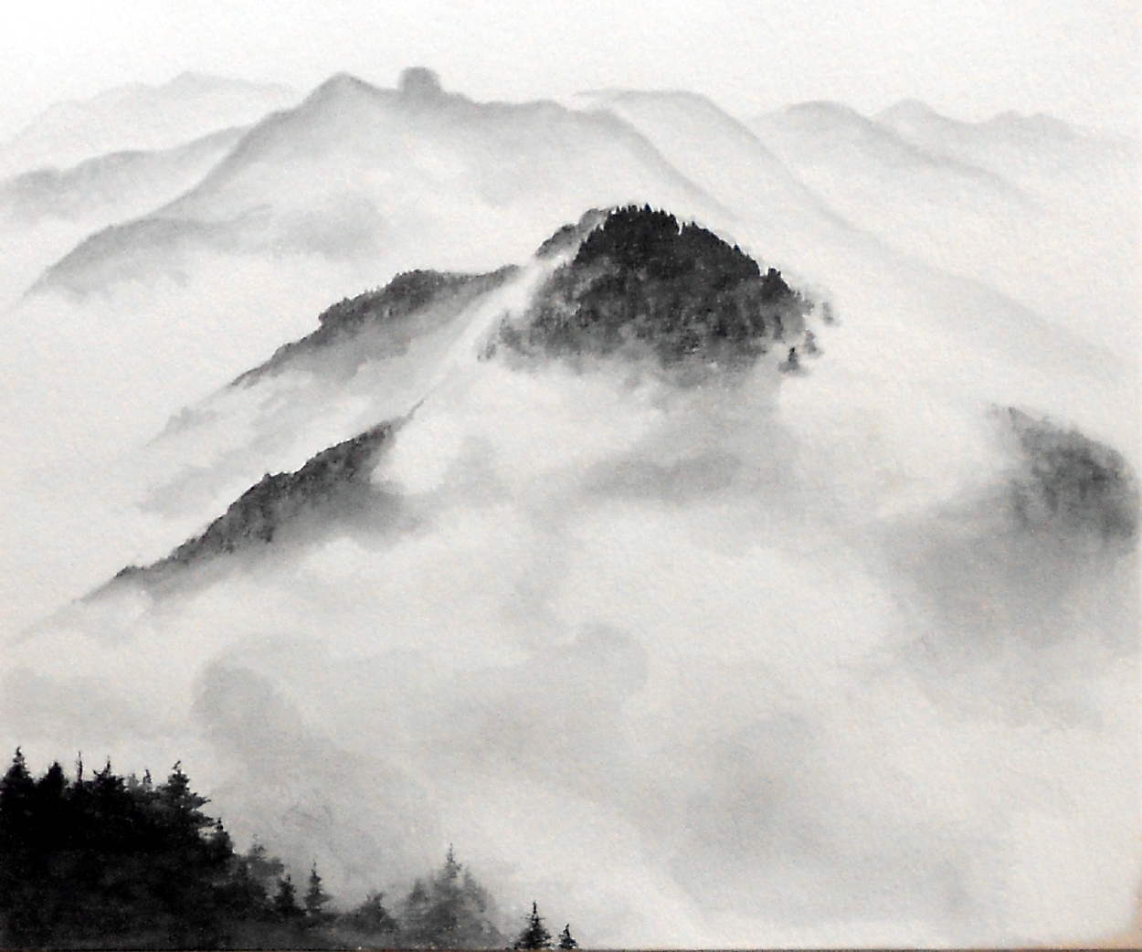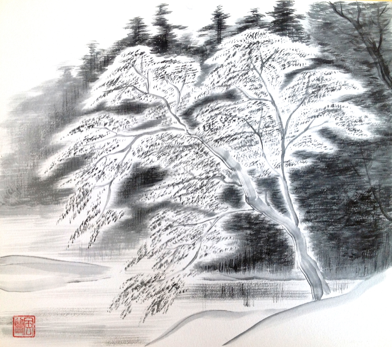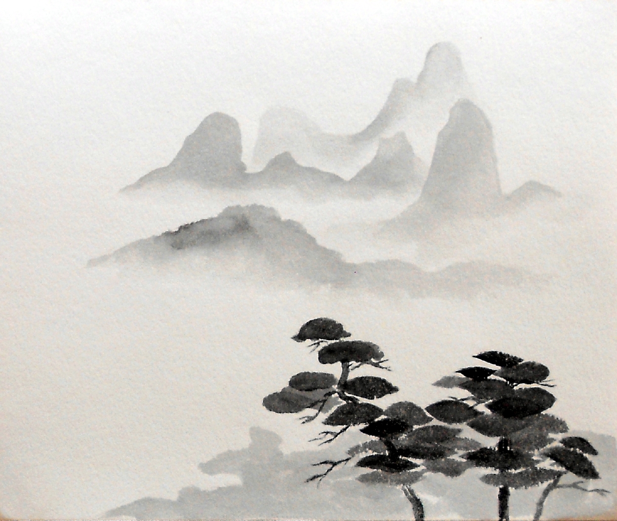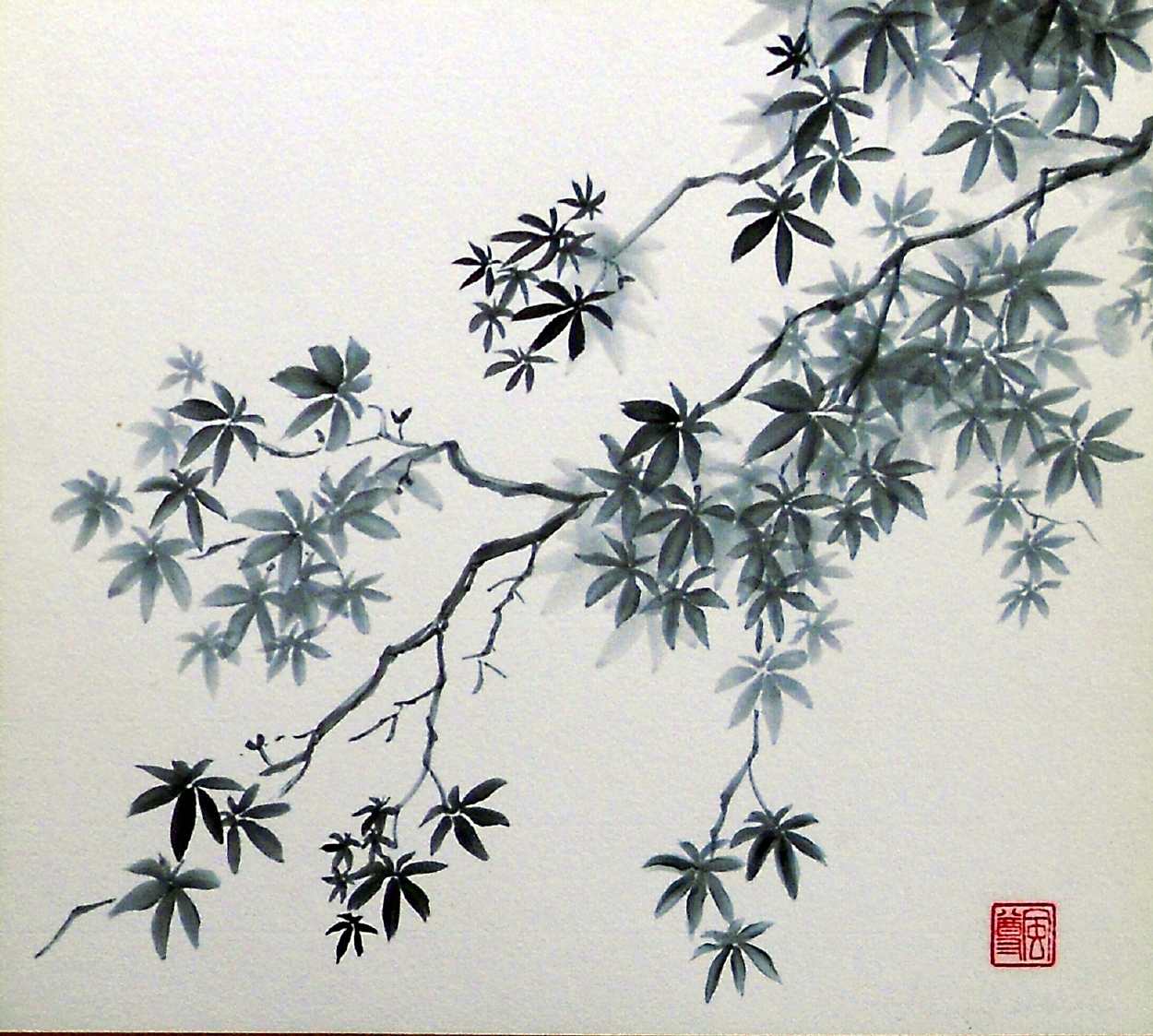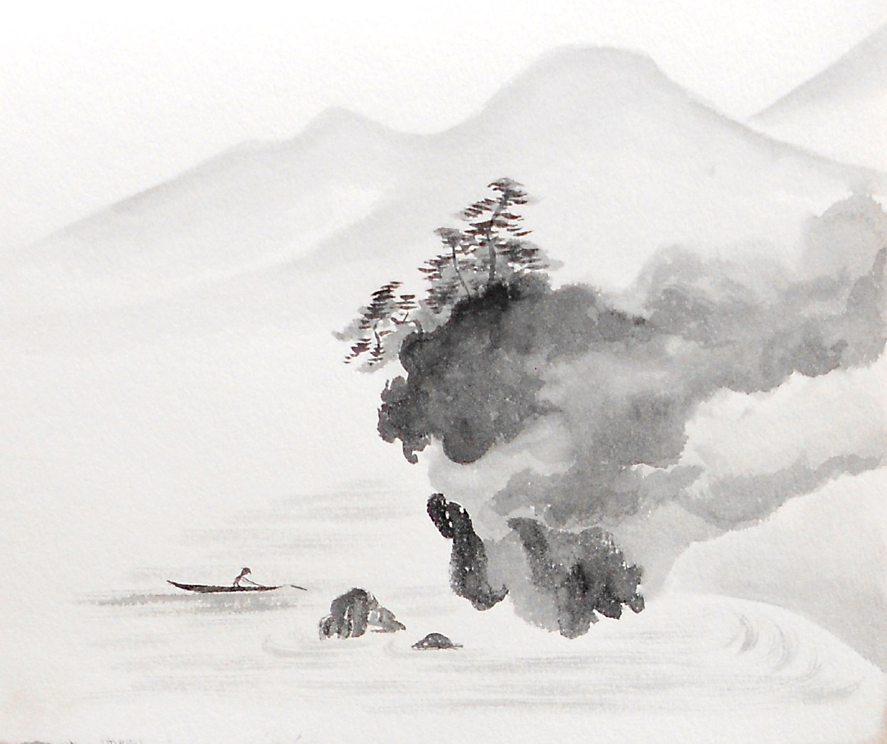 Sumie (brush painting with chinese ink) on rice paper, 24x27 cm