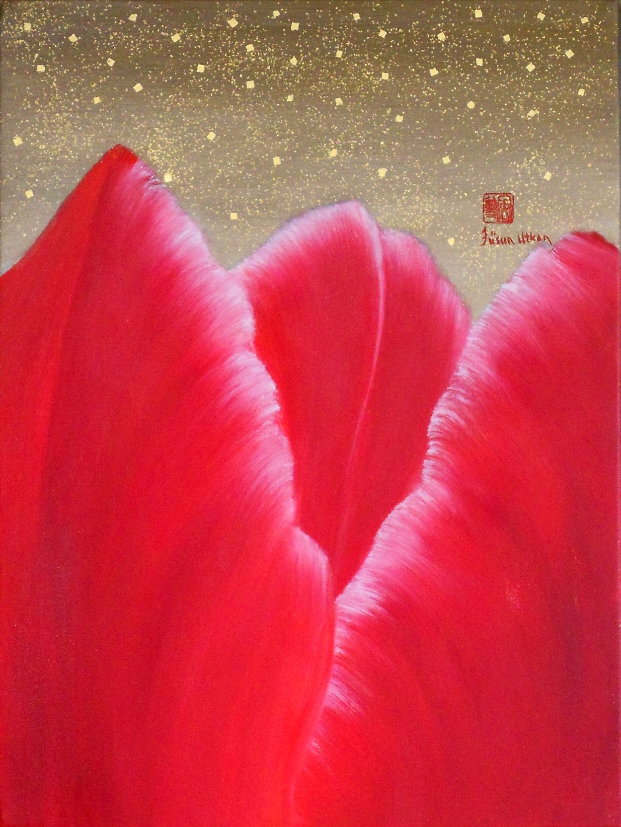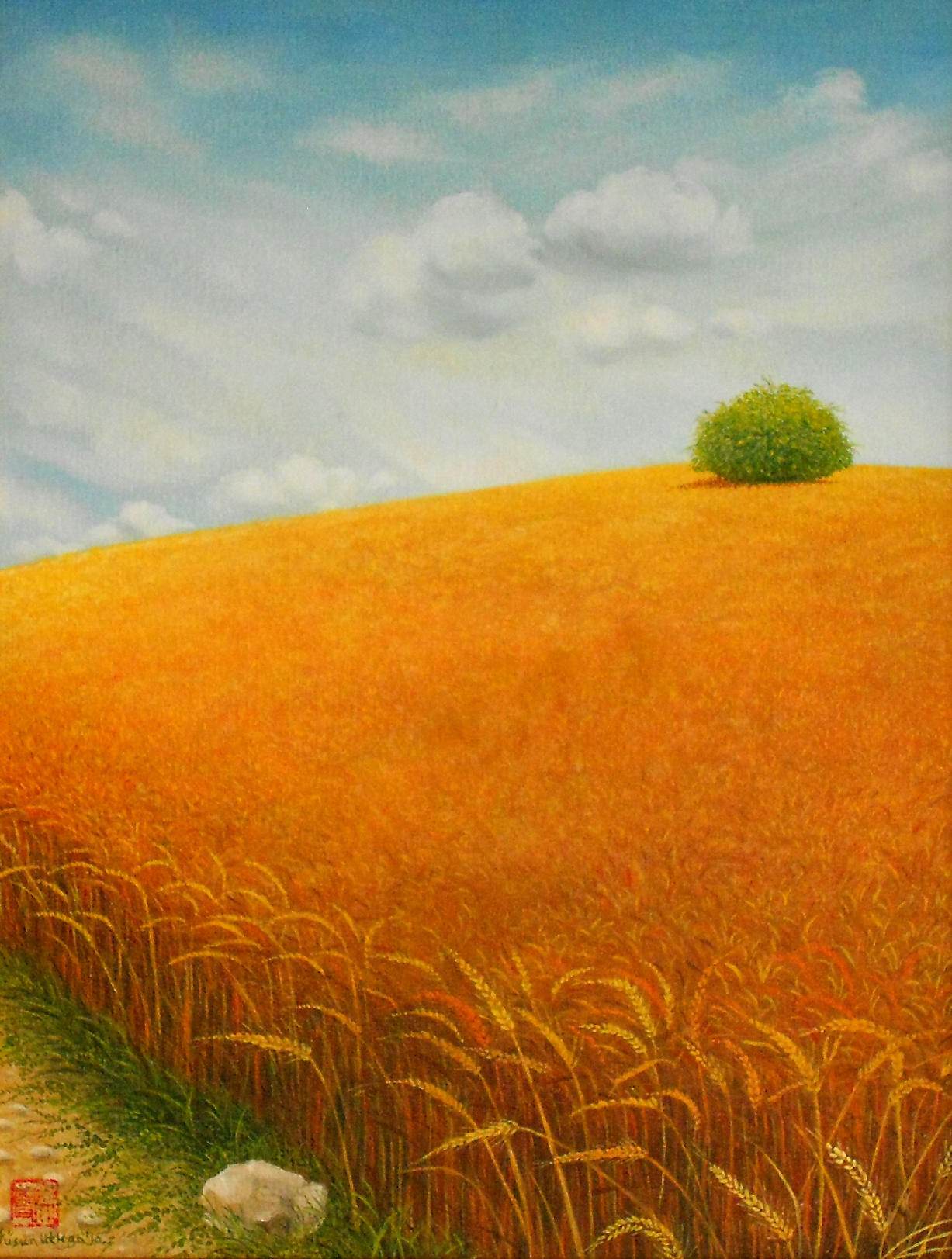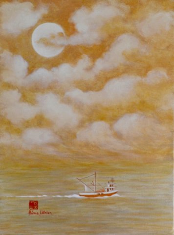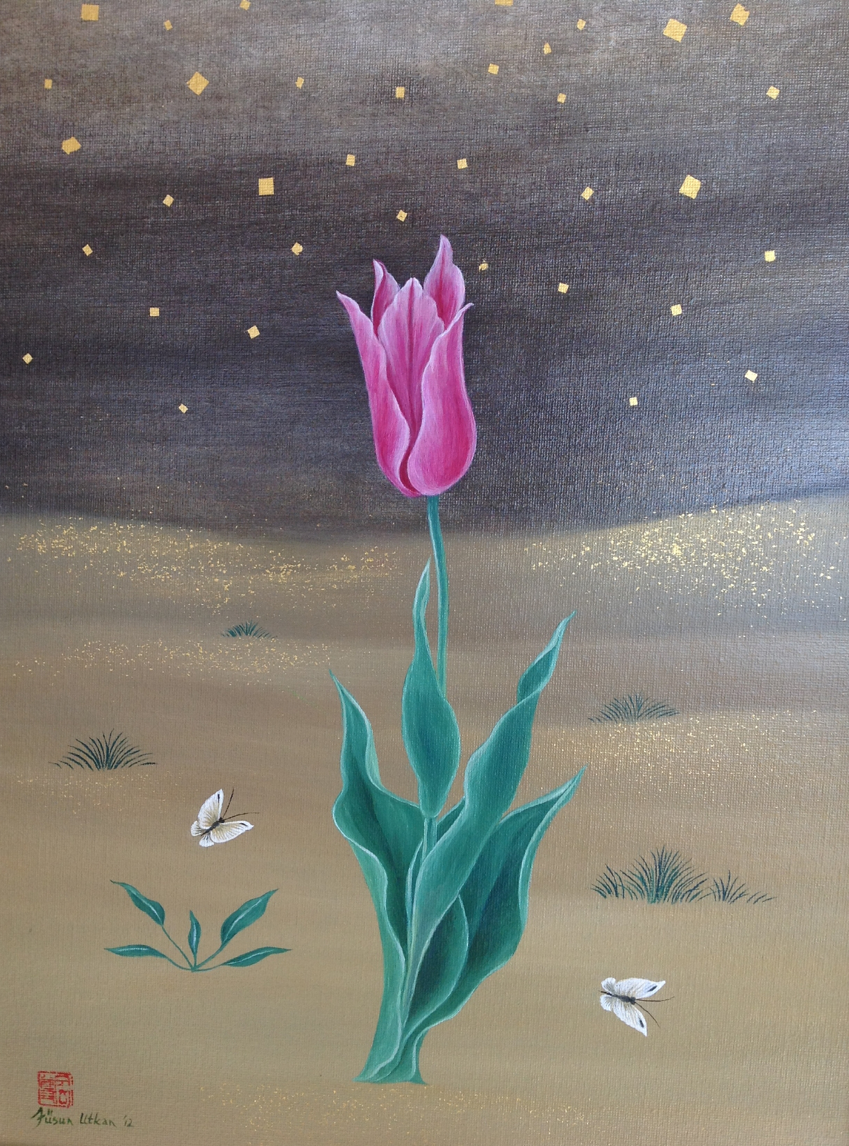 Oil paint and gold-leaf on canvas board, 30x40 cm