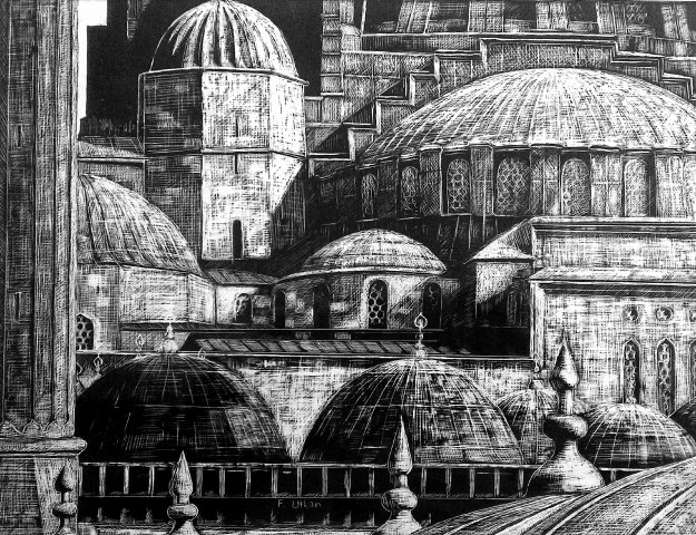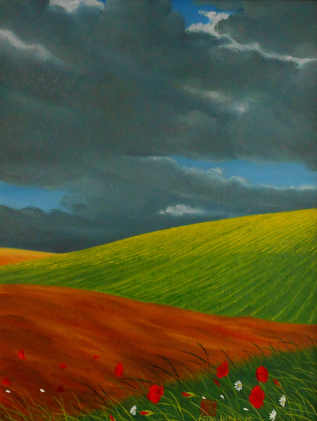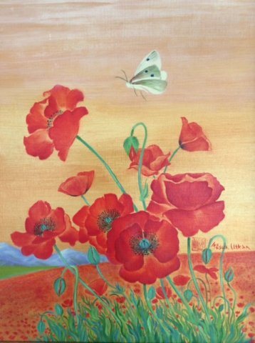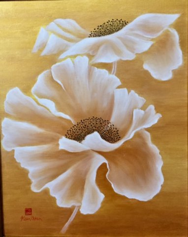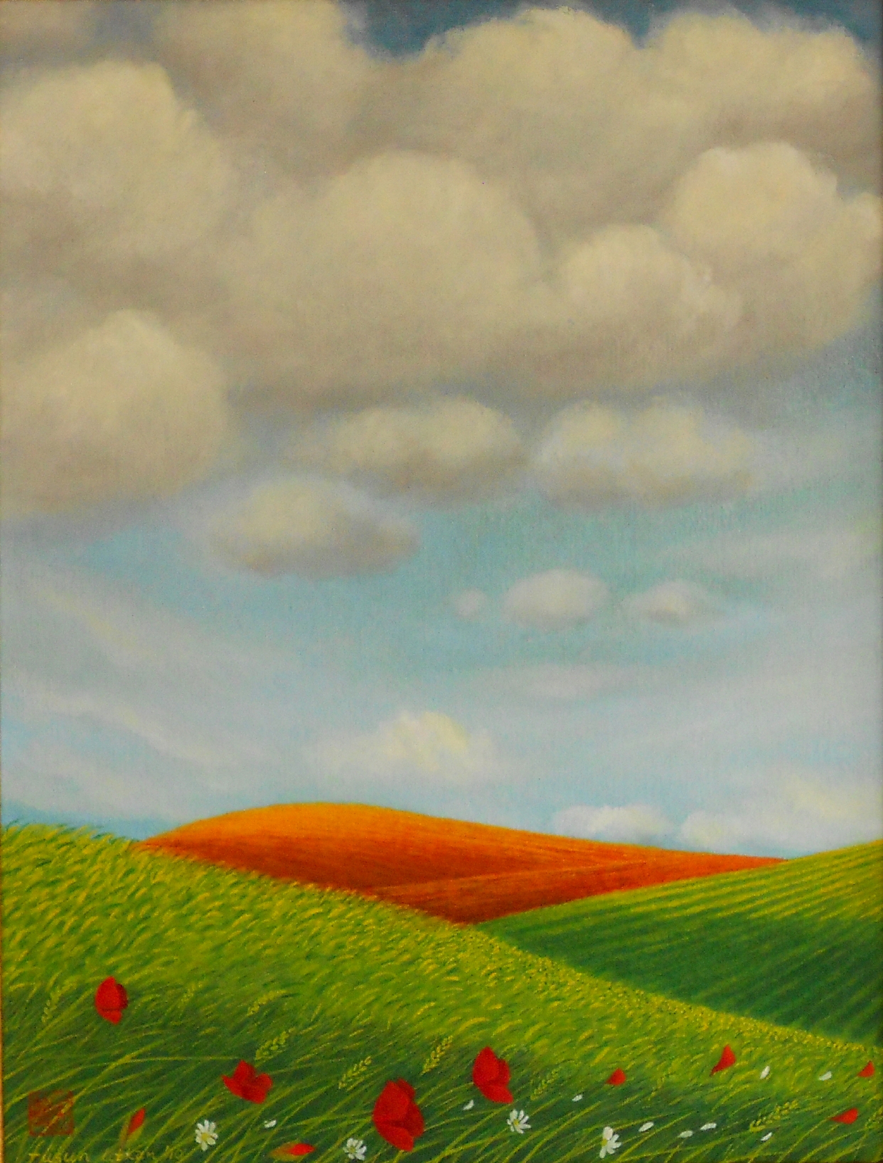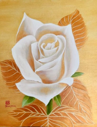 Oil paint and gold-leaf on canvas board, 30x40 cm